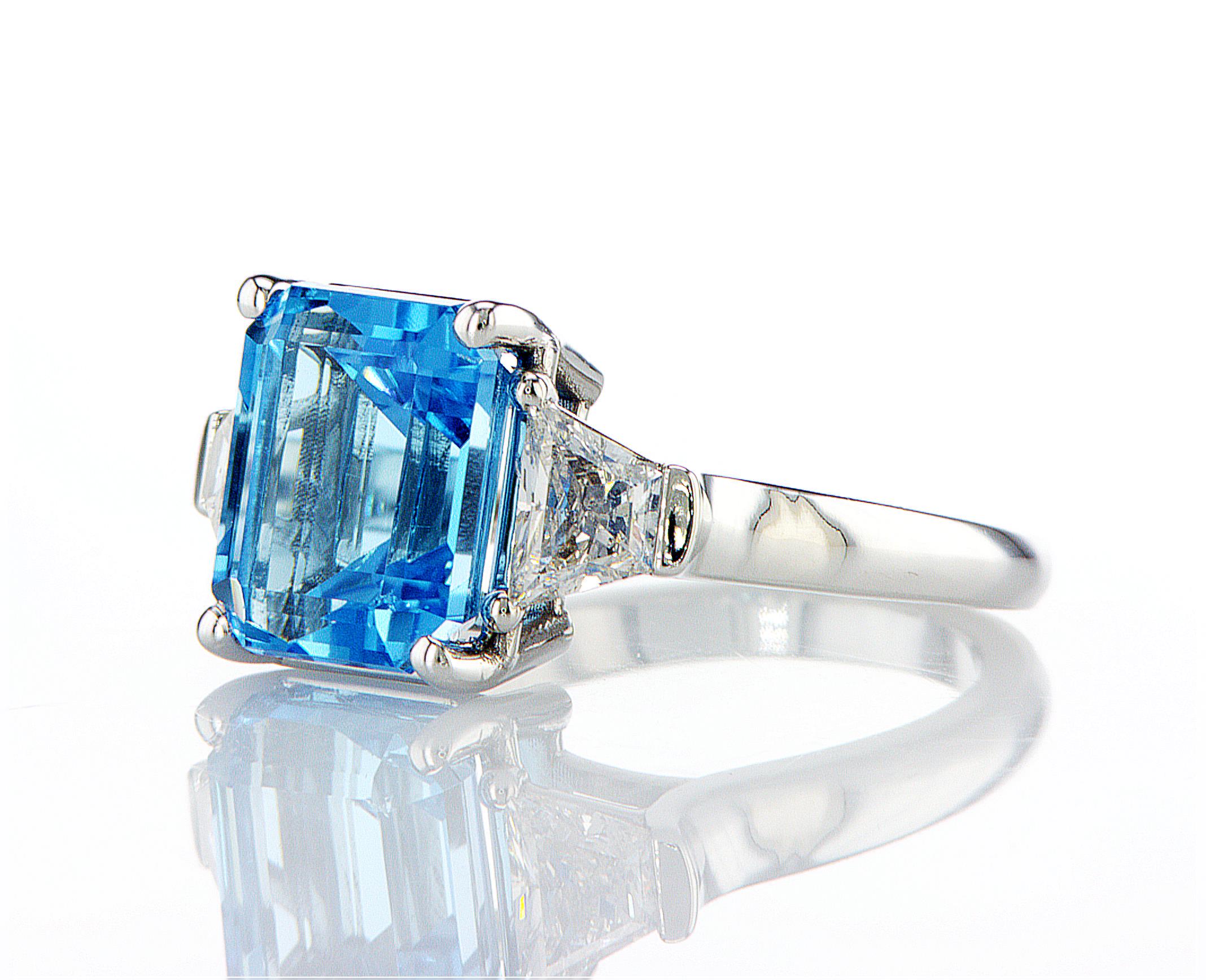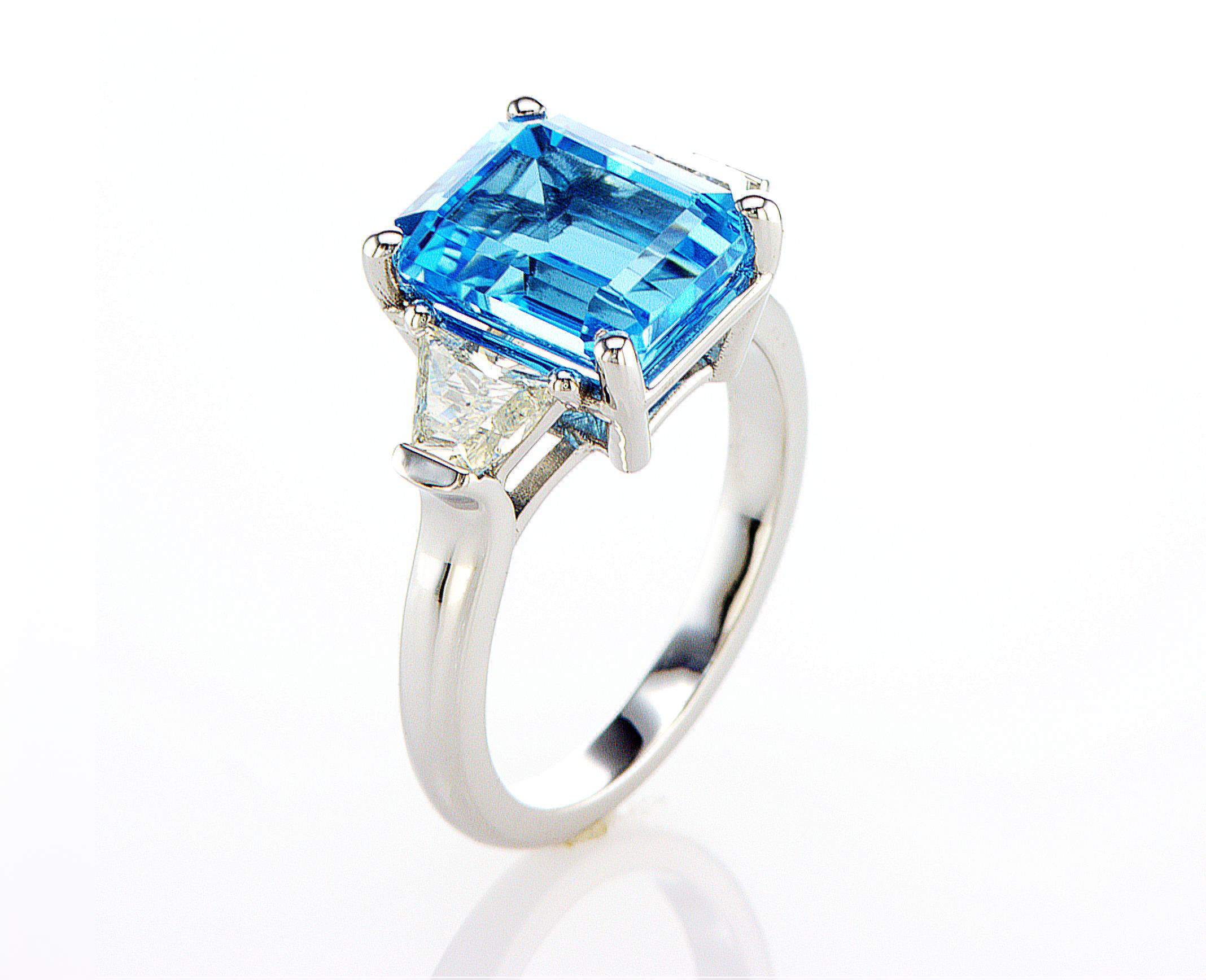 טבעת משובצת טופז כחול ויהלומים במראה יוקרתי