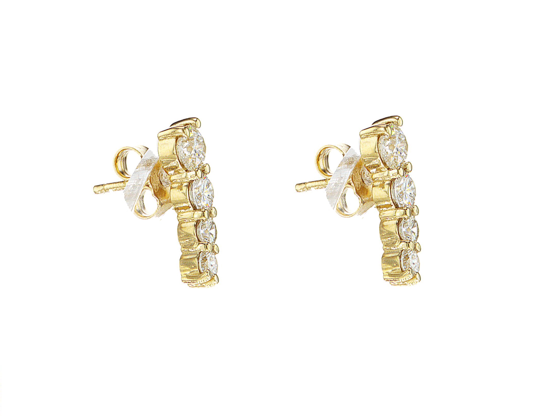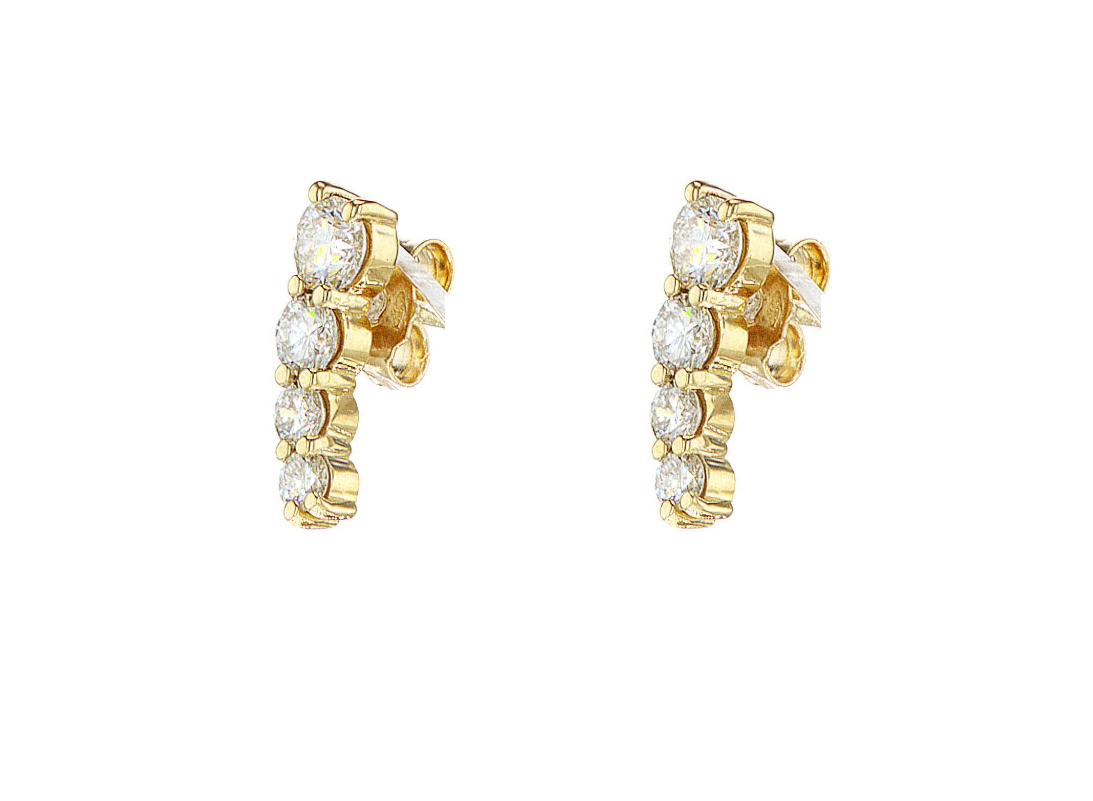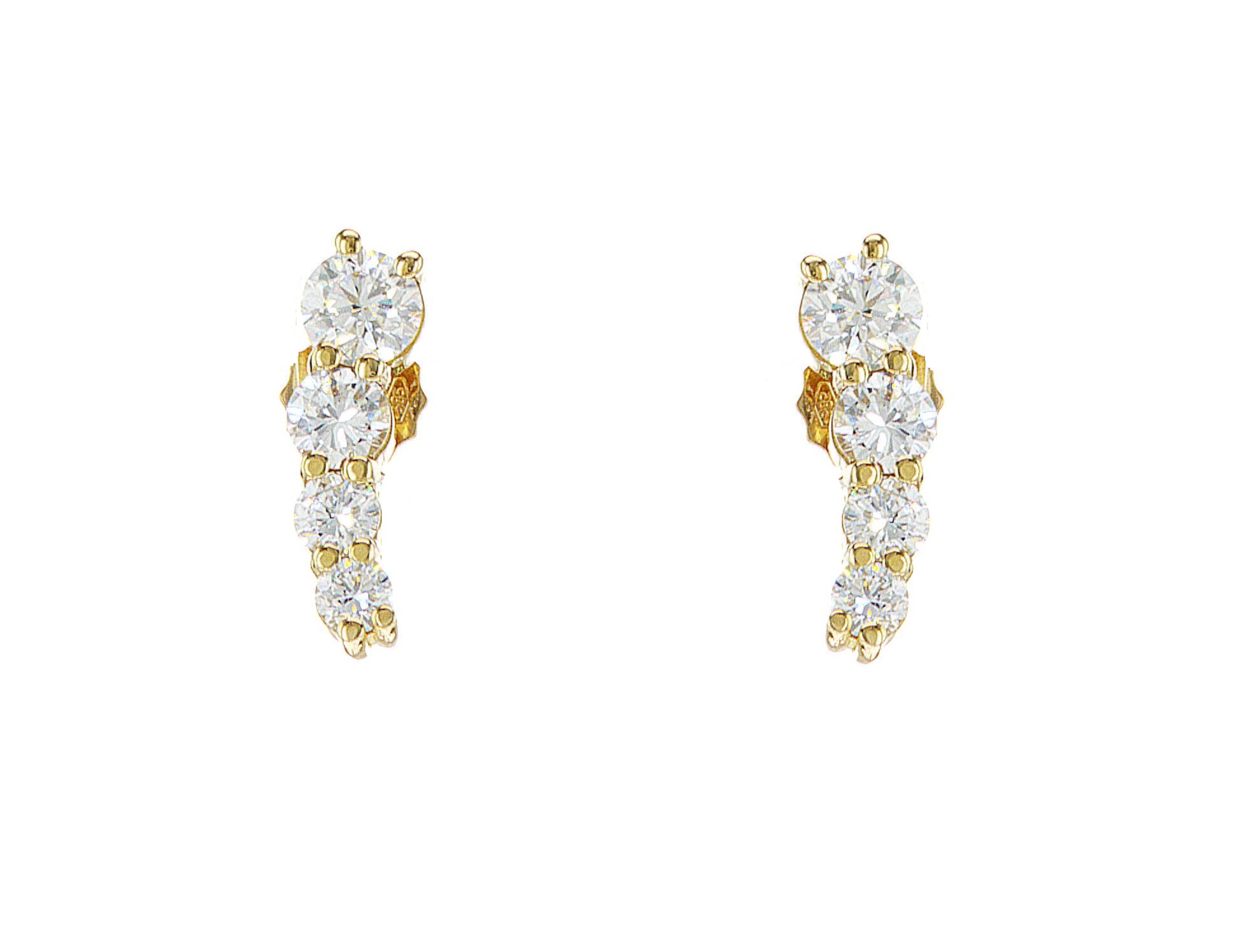 עגילי זהב צמודים עם יהלומים עגולים מדורגים